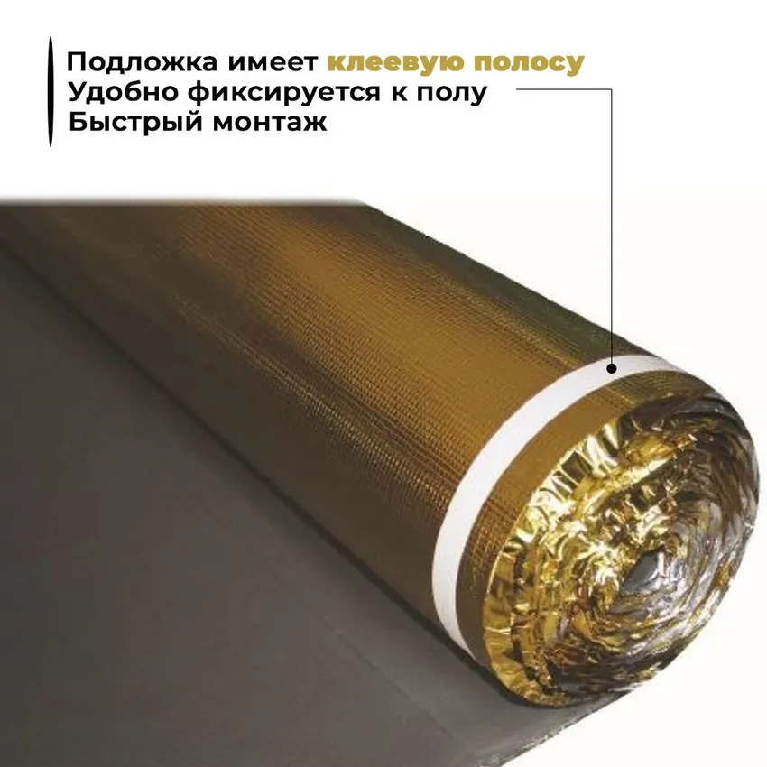 Подложка фольгированная EVA под ламинат, ковролин 3 мм, рулон 6,6м2